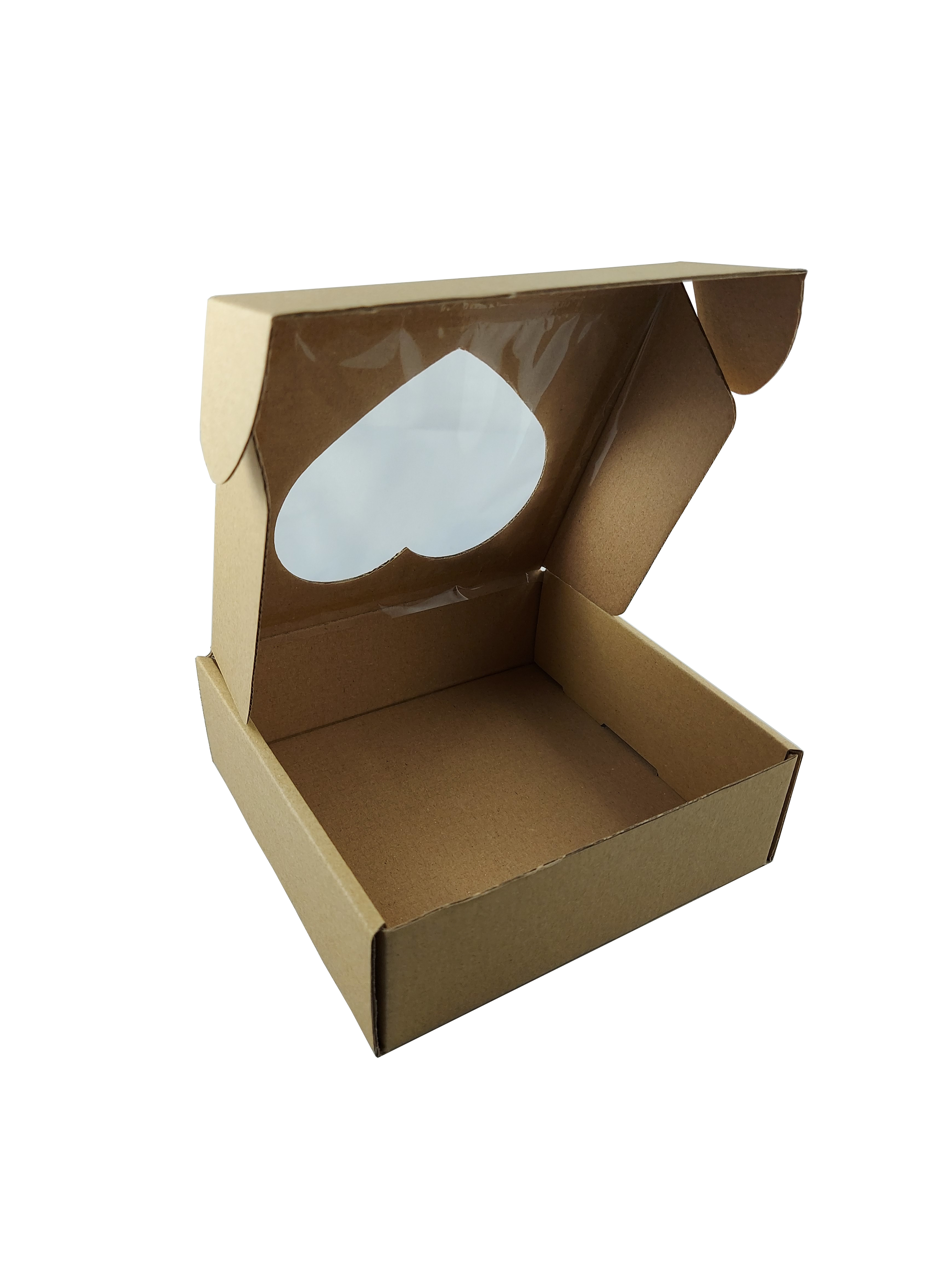 - Ozdobne pudełko fasonowe z okienkiem wykończonym folią celofan.