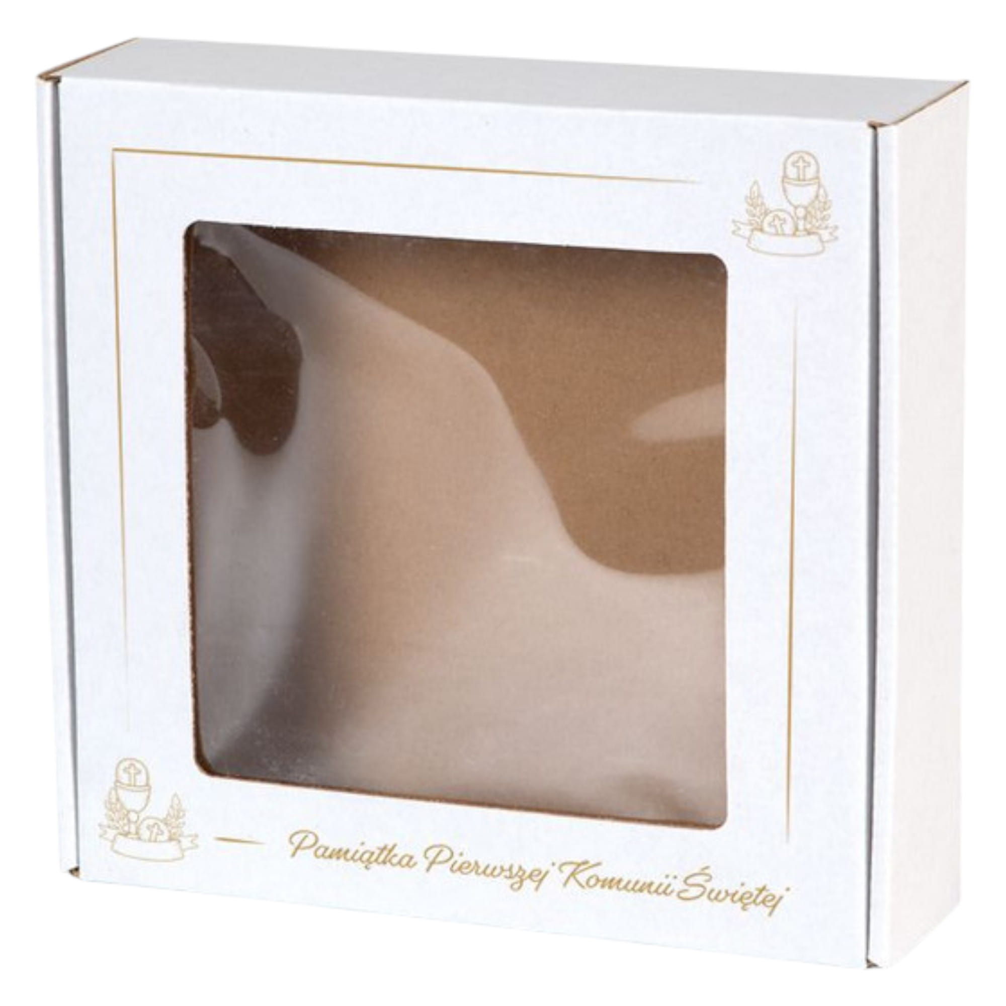 BIAŁE Pudełko na z OKIENKIEM KOMUNIA 200x200x50mm Pudełko na Prezent