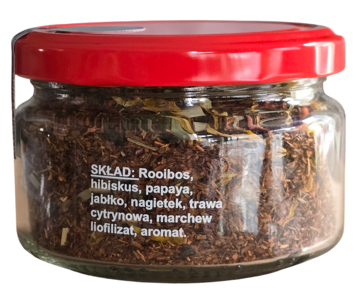✅ Składniki: hibiskus, papaya, jabłko, nagietek, trawa cytrynowa, marchew liofilizowana, aromat.