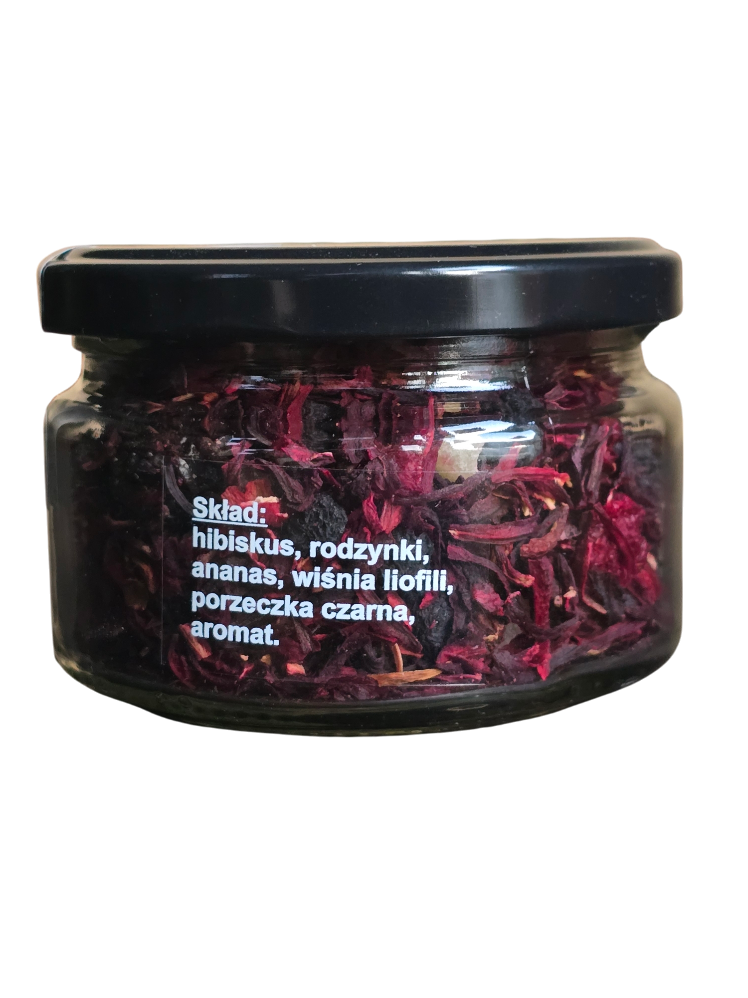 Hibiskus: Nadaje herbacie intensywną, czerwoną barwę oraz wyrazisty, lekko kwaskowaty smak. Bogaty w witaminę C, wspomaga odporność, działa orzeźwiająco i oczyszczająco na organizm. Uważany za naturalny sposób na poprawę krążenia i obniżenie ciśnienia krwi.