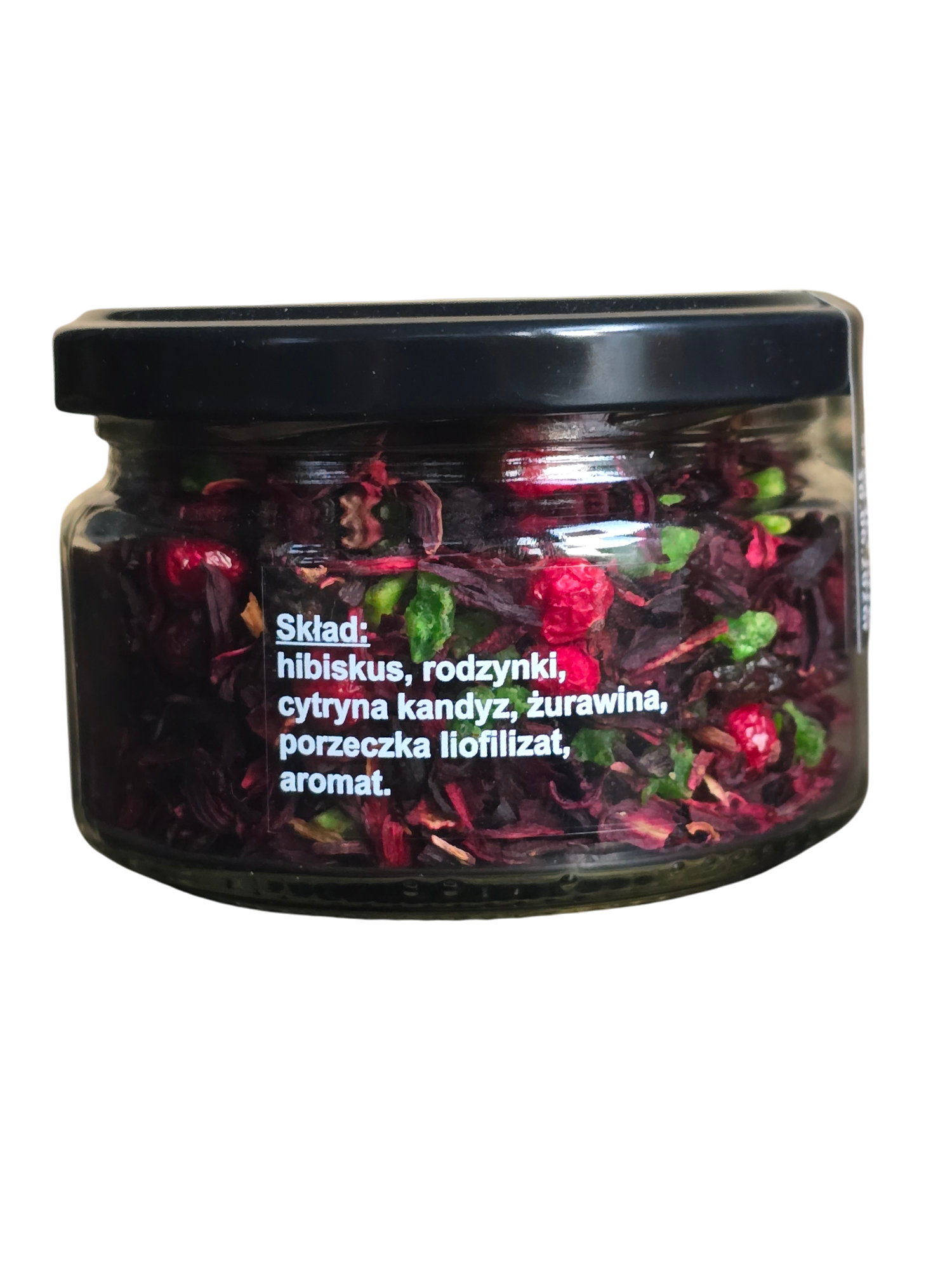 Hibiskus: Nadaje intensywnie czerwoną barwę i kwaskowaty smak. Bogaty w witaminę C, wspiera odporność i działa orzeźwiająco. Znany z właściwości wspomagających pracę serca i układu krążenia.