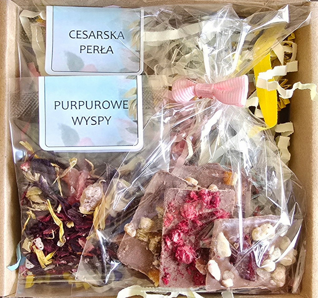 Mały Zestaw Prezentowy Upominek Box prezentowy Herbatki, Czekoladki z Owocami