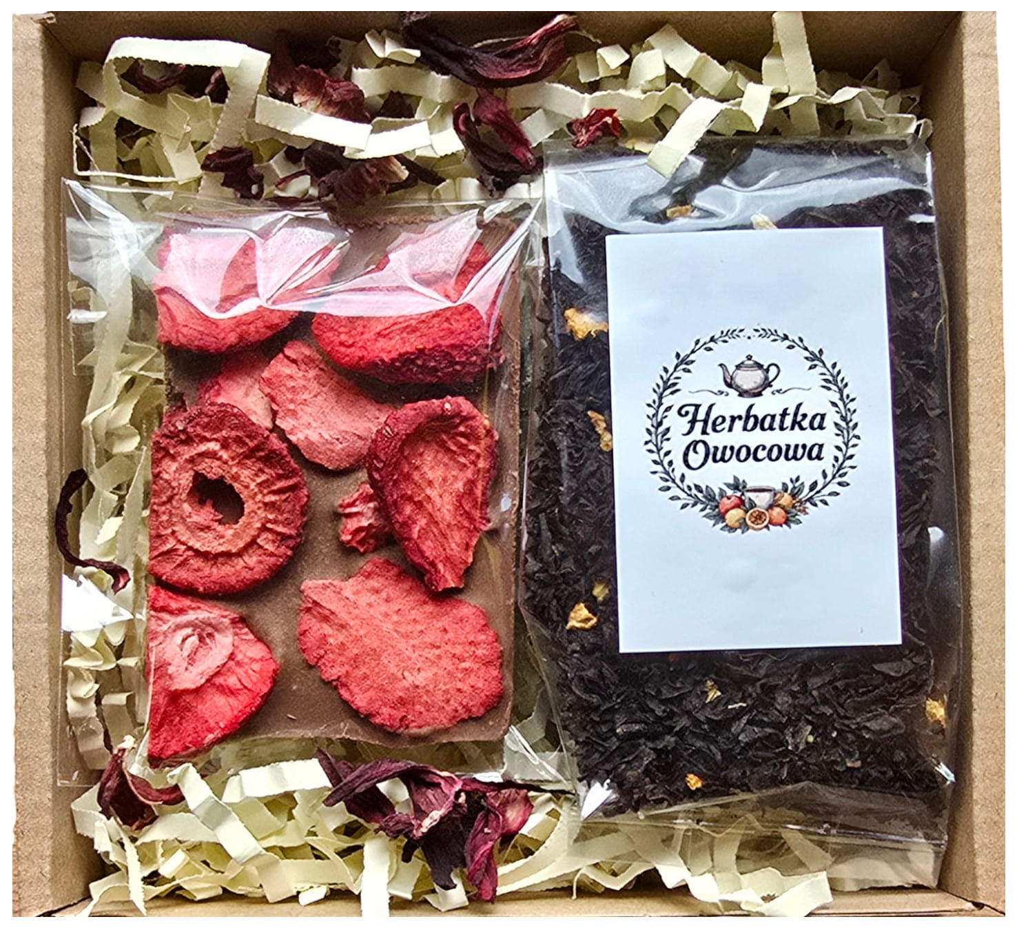 Naturalne wypełnienie – ekologiczna wełna drzewna dba o bezpieczeństwo i piękną prezentację zestawu.